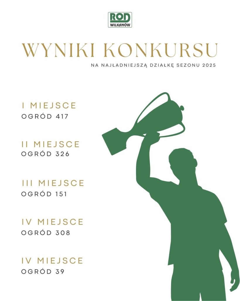 Szczegółowe wyniki znajdziecie na załączonym zdjęciu. Wszystkich wymienionych prosimy o kontakt poprzez wiadomość mailową na adres: ogrodwilkanow@wp.pl.