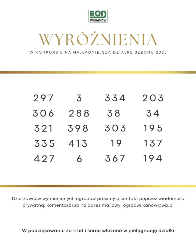 Serdeczne gratulacje składamy zdobywcom podium oraz wszystkim wyróżnionym uczestnikom. Wasze działki są dumą naszego ROD!